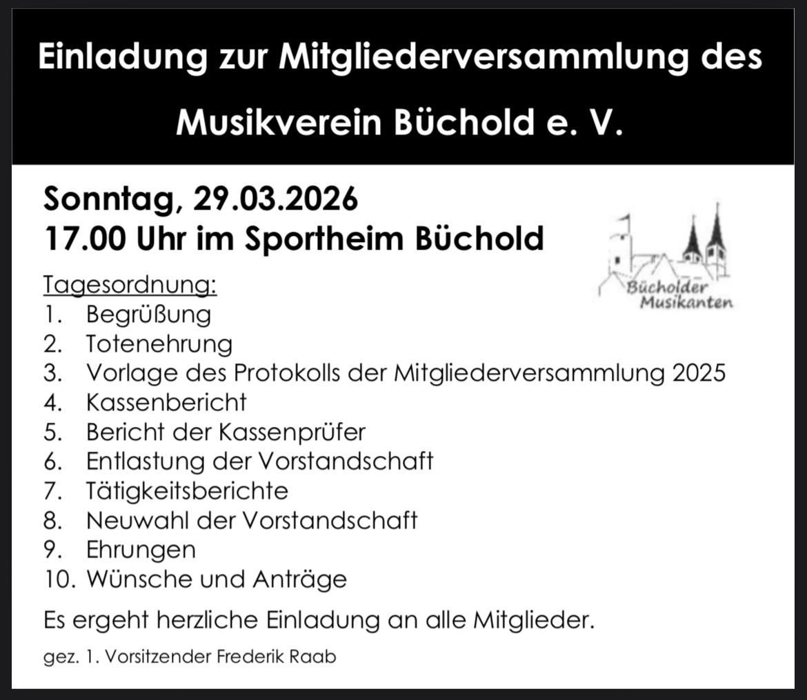 Sportheim BücholdJahreshauptversammlung mit Neuwahlen